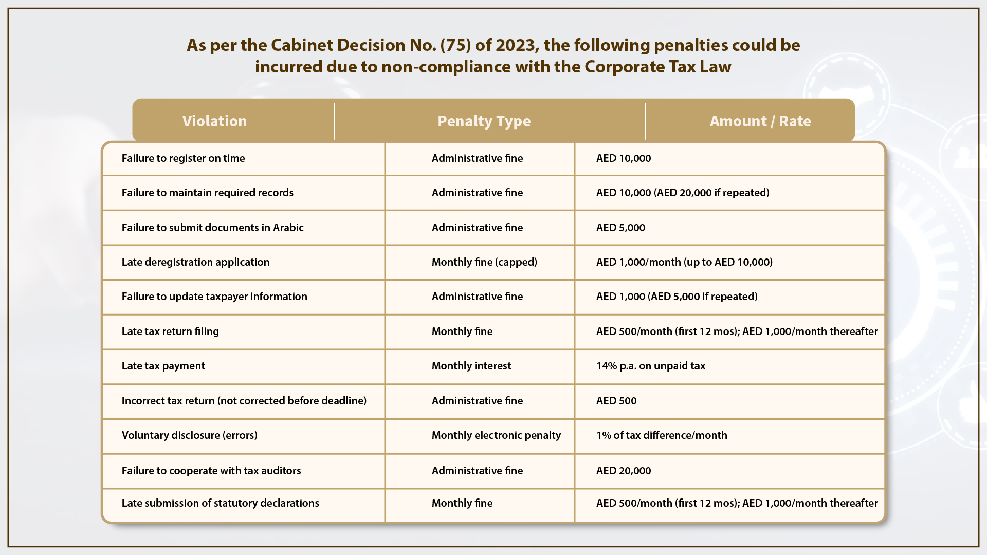 - AED 10,000 fine for failure to register for Corporate Tax.
